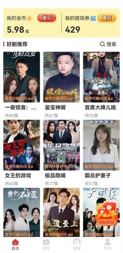 2、全网热门短剧资源应有尽有,且也是不用费用满足观众的观看,也有很多的短剧任务让你参与获益;