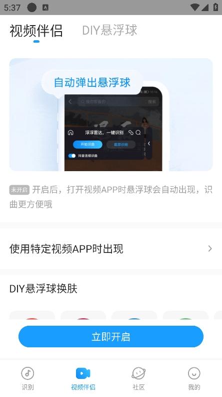 2、提供视频伴侣服务,通过悬浮球的方式,让用户们在播放视频时进行背景音乐识别;