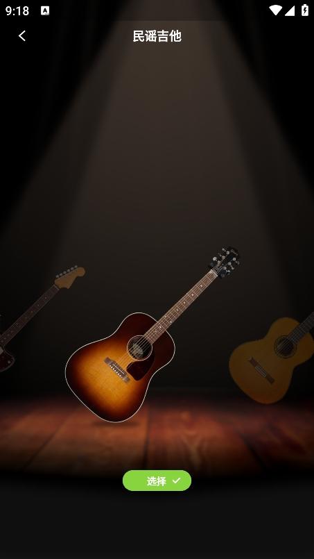 3、在设置中有不同的音色可选,提供了民谣吉他、古典吉他、电吉他。