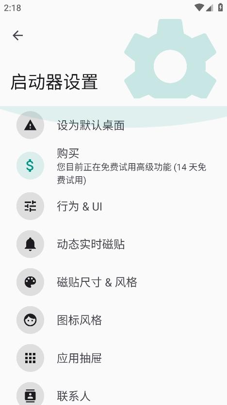 3、在启动器设置中,有更多的关于磁贴、图标、应用抽屉、按键手势、备份的设置项。