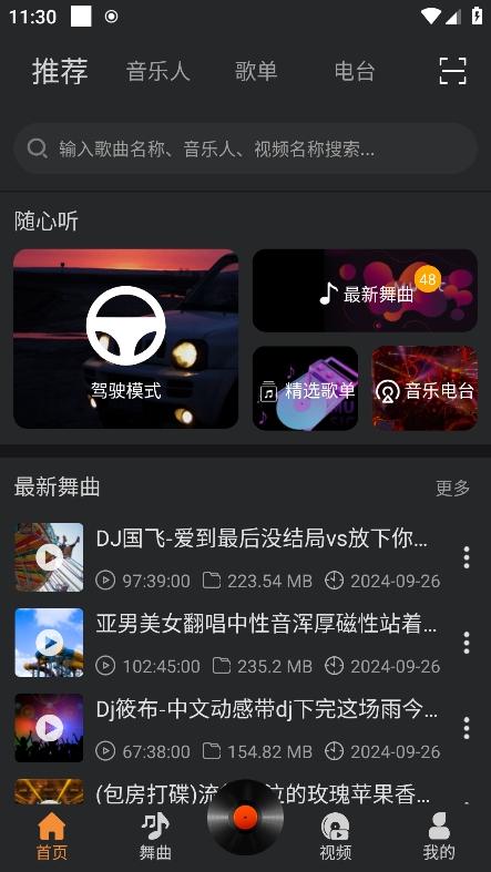 1、首页中用户们可以得到各类dj音乐的推荐服务,支持内容搜索,快速发现作品;