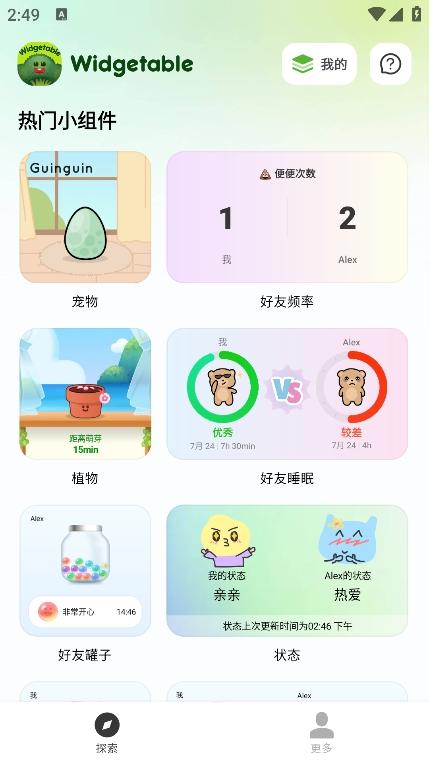 widgetable宠物是一款桌面小组件的软件,有很多可以互动的桌面小组件提供,可以有各种有趣好玩的宠物内容,添加至你的桌面开展好玩的互动模式,给你更多的桌面装扮使用乐趣,有兴趣的朋友都是可以来下载使用。