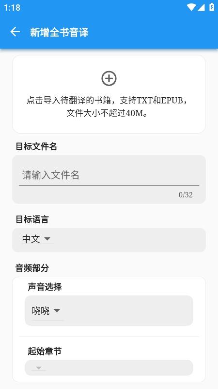 2、支持将txt与epub格式的电子书内容进行导入,都是可以实现音频转换的服务;