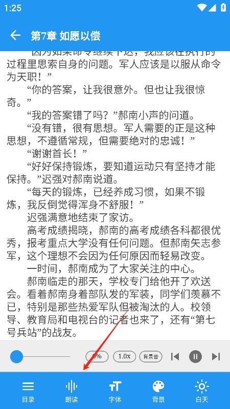 5、转换完成后,进入阅读,点击朗读,即可实现听书了。