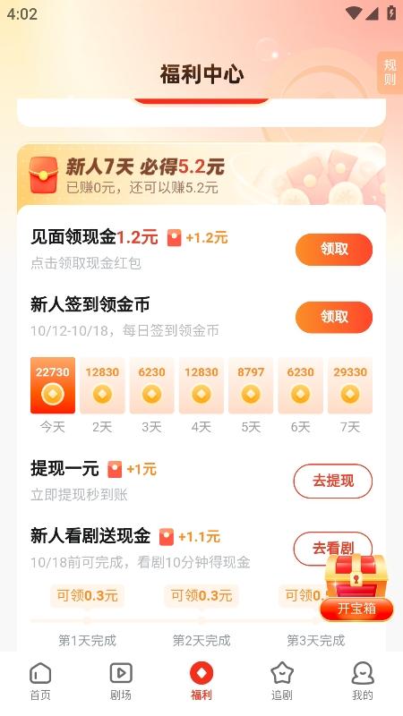 3、为用户们带去了许多的福利,可以通过签到、看短剧来获取金币奖励;