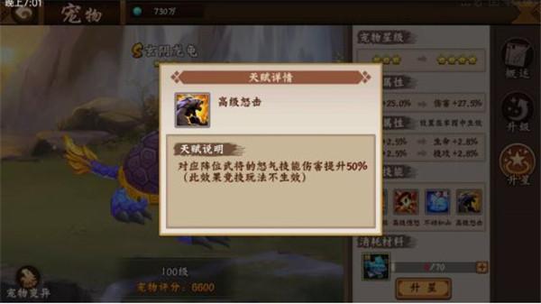S级宠物龙龟,二天赋提升怒气,四天赋提升大招伤害,优先携带者:庞统。庞统是一位靠一技能强力吸附和四技能大招的极大输出立足于副本之中的,因此龙龟对于庞统的辅助效果受益是极大的。