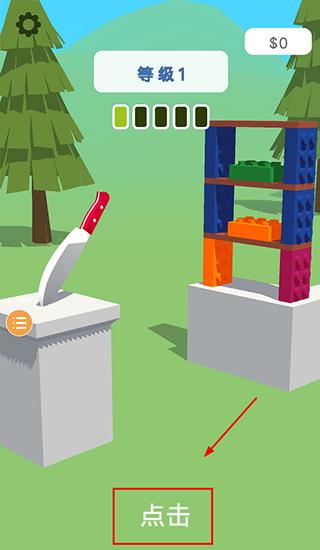 1、打开切开一切游戏,【点击】屏幕,即可开始控制小刀。