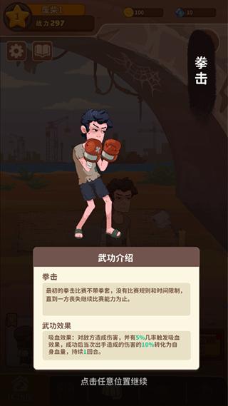 1、首先进入我不是废柴最新版游戏,你将从一个废柴开始,学习一种功夫,例如拳击。
