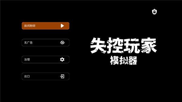 1、进入失控玩家模拟器游戏进入首页,我们可看到,房间粉碎,、无广告、治理等选项。