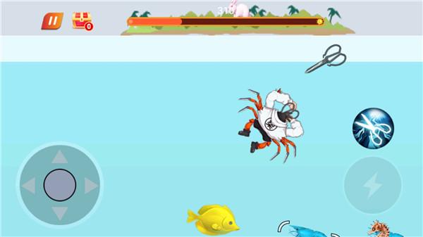1、为一个小螃蟹,需要在艰险的环境中生存成长,和敌人战斗。
