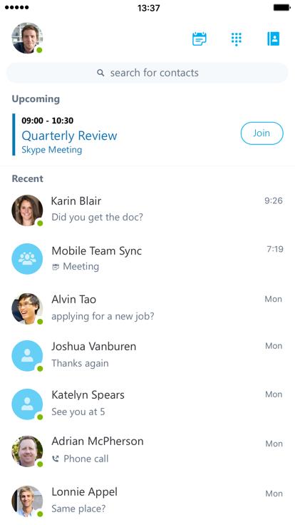 通话:保持联系。进行免费的Skype至Skype通话,或以低廉的费率拨打国内外手机和座机。