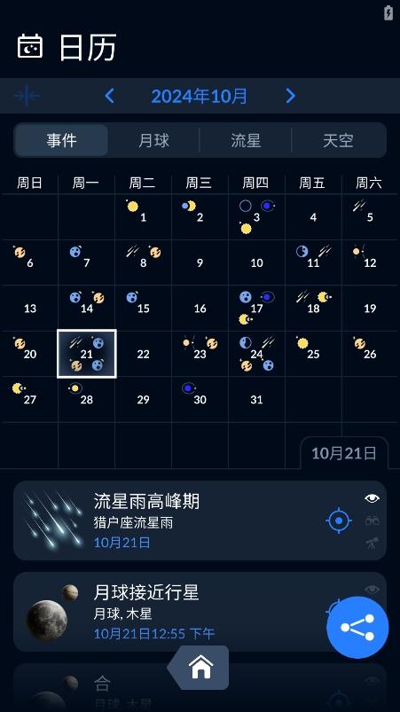 1、为用户们带去了一个天文的日历,你可以查看每日的天文情况,进行有效观察;