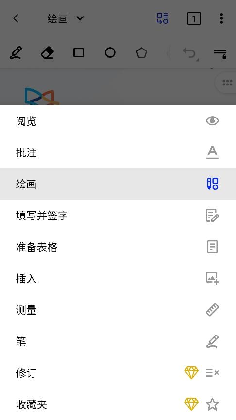 2、任意的选择一个文件,点击下拉功能栏,有丰富的功能可供选择,支持阅览、批注、绘画、填写、测量等;