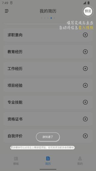智能简历app使用引导