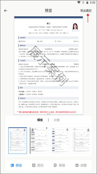 2、填好之后就可以点击右上角的“预览”进行查看,最后“导出简历”