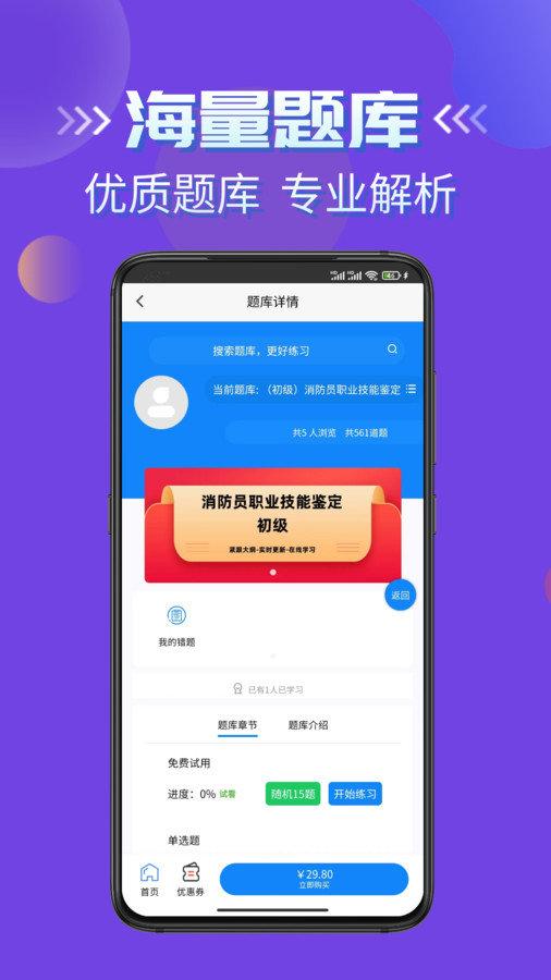 消防员考试学知题是款丰富的题库知识点学习辅导平台,专门为备考消防的用户打造的,全面的题库知识点内容,优质的题库,专业解析,随时随地在线刷题学习,掌握更多的知识点内容,开启智能练题模式,顺序、随机等,强化练习,大家学习必备的神器,轻松在线开启学习辅导。