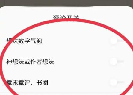 4.评论开关,包括想法数字气泡、神想法或者作者想法、章末章评、书圈等