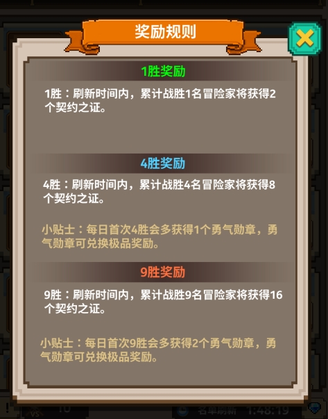 每天可以挑战10次,每次挑战成功都可以获得奖励,连续1胜、4胜、9胜奖励。挑战成功获得的奖励还可以兑换冒险伙伴哦~