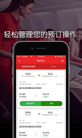在亚洲航空华为手机中,我们可以预订我们想要的航班,如果出现任何问题,例如航班延误,它还可以给我们智能提示。