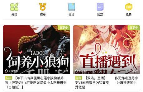 2、分类非常详细,用户可以查看领导板,也可以输入关键字来搜索喜欢的作者。