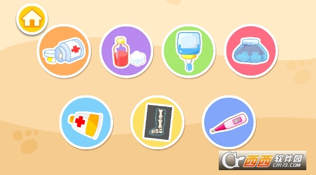 宝宝医院这款游戏中让儿童自己来体验当医生的感觉,通过角色扮演游戏让孩子了解基本医用知识,同时克服对去医院看病的恐惧心理。比如发烧了该怎么办?游戏包含十多种小游戏哦!
