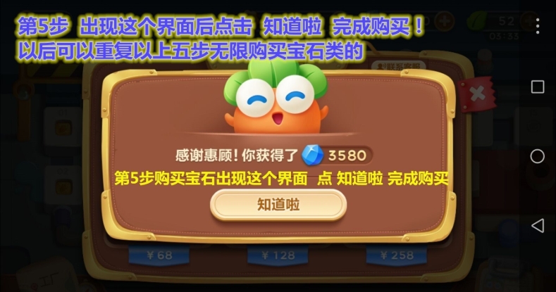 石就可以重复无限购买了!用宝石购买道具之类的就不用说了!