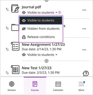 如果用户想进一步更改期刊的可见性或发布条件,用户也可以从课程内容部分进行操作。