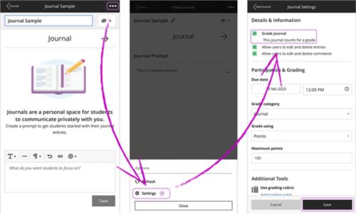 转到Blackboard并选择右上角的三个水平点菜单,选择 “设置”选项 以打开“Blackboard设置”页面,选中标有“成绩Blackboard”的框。在“参与和评分”部分中,用户可以自定义默认评分设置以满足用户的需求,完成后,选择“保存” 选项。