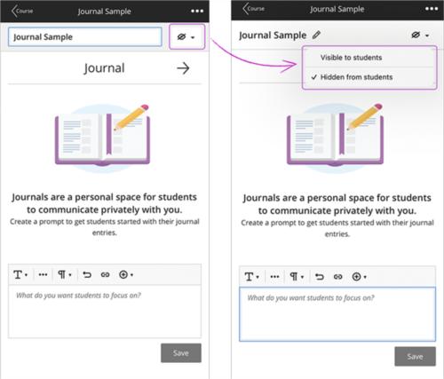 在新杂志页面选择杂志标题旁边的眼睛图标,选择你是要把Blackboard藏起来,还是让学生看得见。