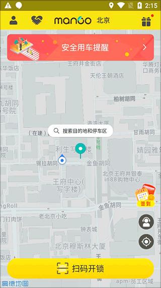 进入app后看自己附近有没有芒果电单车,找到后点击下方的扫码开锁