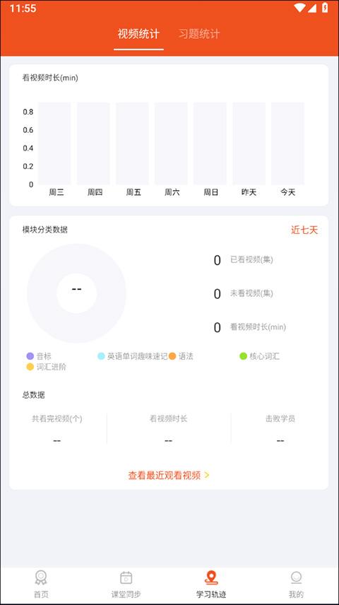 4、在看完之后,同学们想回顾这次视频内容的话,可以在学习轨迹界面中找到并点击“查看最近观看视频”按钮选项