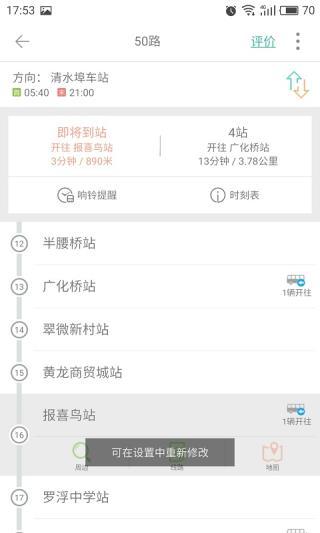 3、站点等车:输入站点、线路、地点信息,显示公交车到哪了,还有几站到。