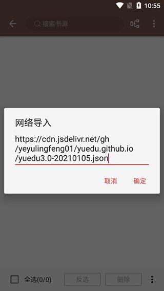 3、将上面的书源粘贴复制到软件界面中,点击确定;