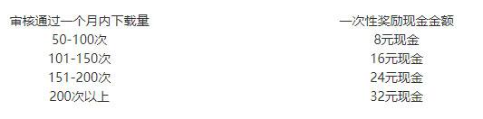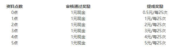 注:提成奖励以25次为节点发放。以0点资料为例:下载数量每达到25次,奖励0.5元;达到50次再次奖励0.5元,依次类推。提成奖励的时间为1年。