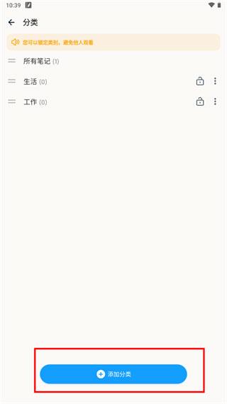 1、主页上有三个默认分类栏,点击末尾的加号即可新建分类