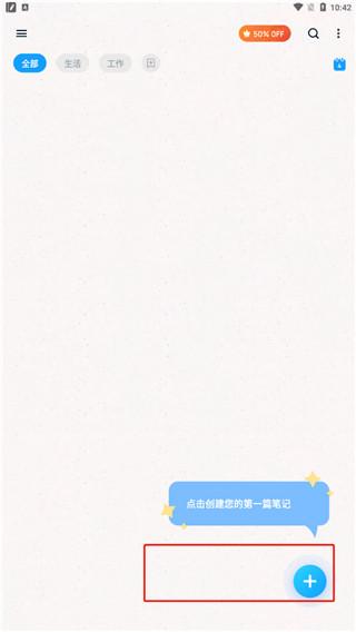 1、打开在本站下载的Easy Notes,进入首页,点击+,可开始创建笔记;