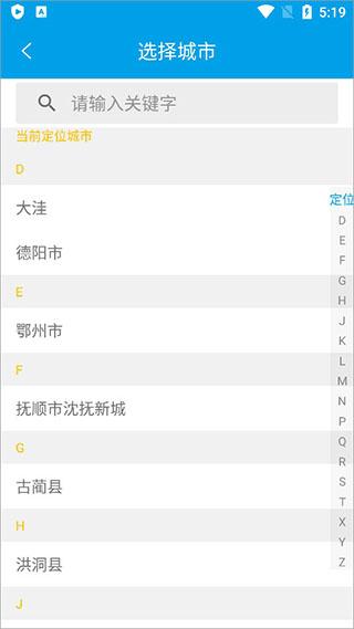 1、打开通卡出行公交车app,点击左上角选择城市;