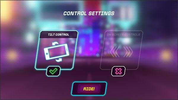 1、下载安装好霓虹骑士,进入游戏选择你喜欢的驾驶方式开始游戏。