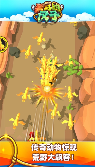 《套马的汉子》是一款超轻休闲小游戏。你是一个骑着小马驹的快乐牛仔,点击屏幕抛出套马杆、滑动手指左右移动套索,即可捕捉上百种超Q超萌超可爱的小动物。不断升级套索,就能解锁新地区,到达你的远方、收集更多新动物。在你的动物园里,你可以收集动物以吸引来自世界各地的游客;通过园区升级、接待观光团,即可成为动物园大亨。继续探索,你还可以解锁神秘的金色传奇动物和狂暴的史诗巨兽。
