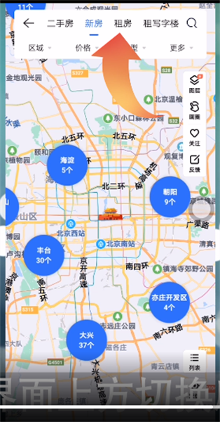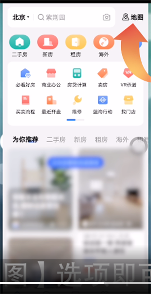 ·点击首页右上角的【地图】选项,即可在地图上找房。
