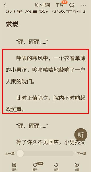1、选择想要下载的小说后,来到小说阅读界面,点击小说正中间区域即可弹出菜单