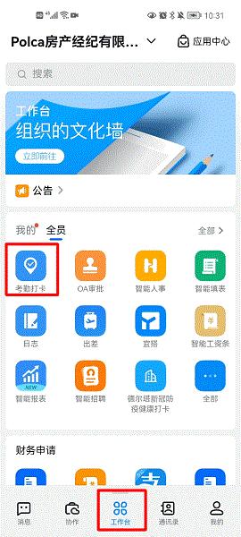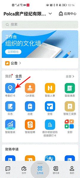 3、在工作台中有着考勤打卡、oa审批、视频会议、智能人事、日志、云端办公室、员工健康、群直播、考勤打卡、智能办公、签到、请假、补卡申请、钉邮、电话会议、办公电话等功能: