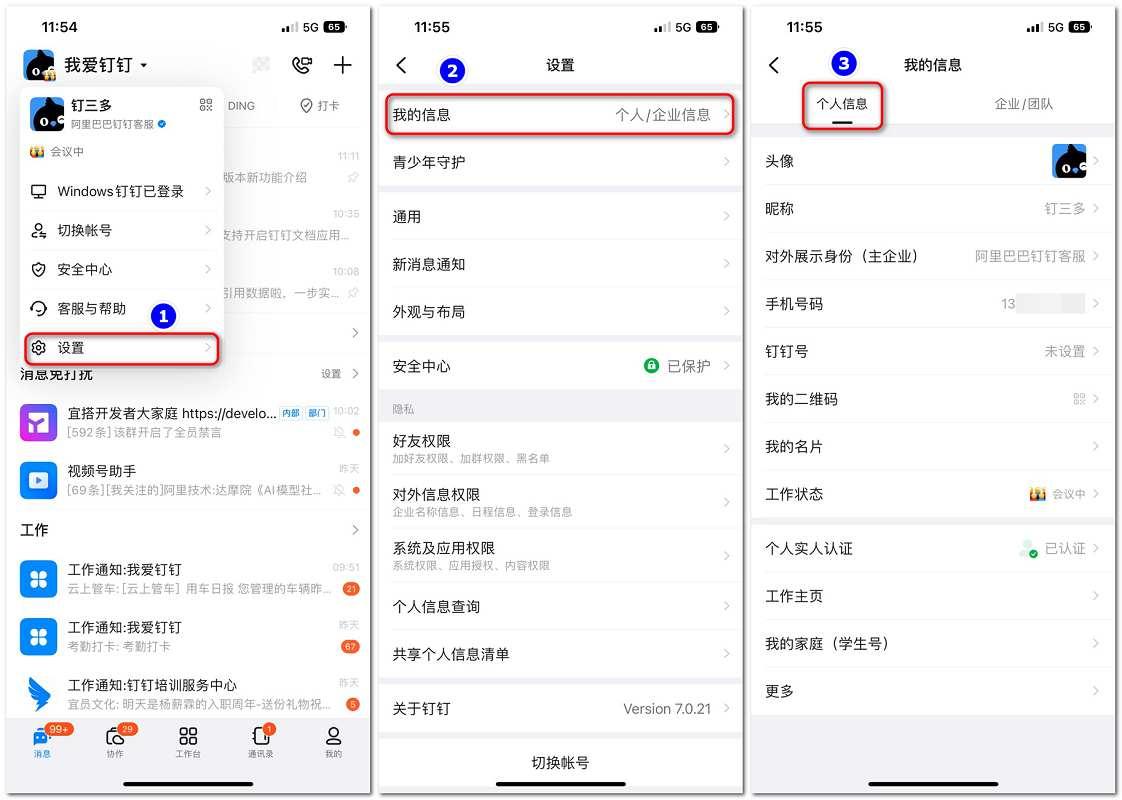 设置路径:点击头像-【设置】-【我的信息】