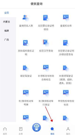 3、推出查询同名人数、查询规范汉字、开具民航乘机临时身份证明、查询网站备案、绑定机动车等多项特色应用,方便群众随时随地办理