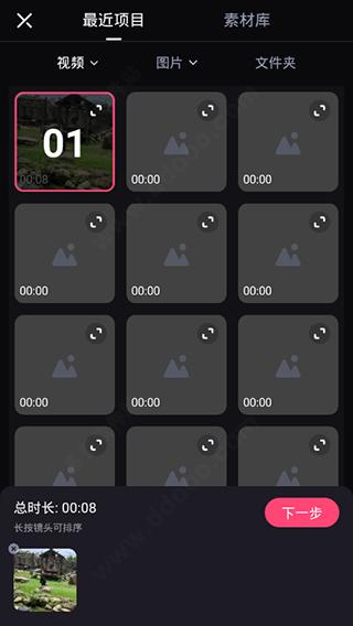 2、选择需要剪辑的素材,软件支持选择多个素材内容;