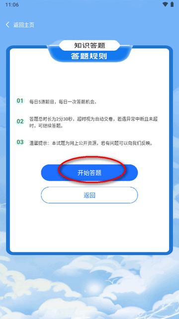 3、在手机上学习知识答题,点开始答题进入。