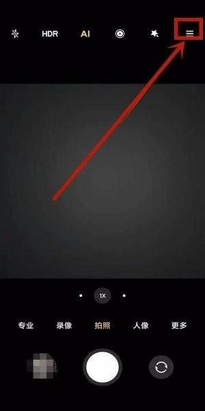 在手机桌面打开相机,并点击右上角的三条杠,看下图的位置;