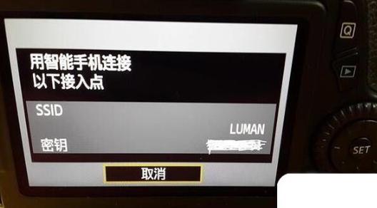 3、现在来到了如下界面,有六个图标,选择第一行第二个(手机图形那个),即连接至智能手机。“连接方法”选择“相机接入点模式”,点击确定,“网络设置”选择“轻松连接”,点击确定。这时出现了下面SSID和密钥,这就是相机发射给手机的Wifi名称和密码。当然,这个Wifi只能传照片用,无法上网。