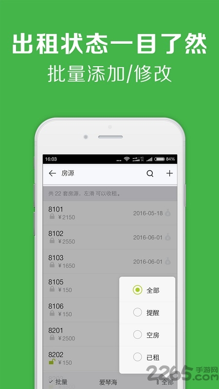 租客:微信实时查租,交租,接收房租单和公告;关注 “租房管理” 微信公众号,2265了解更多。