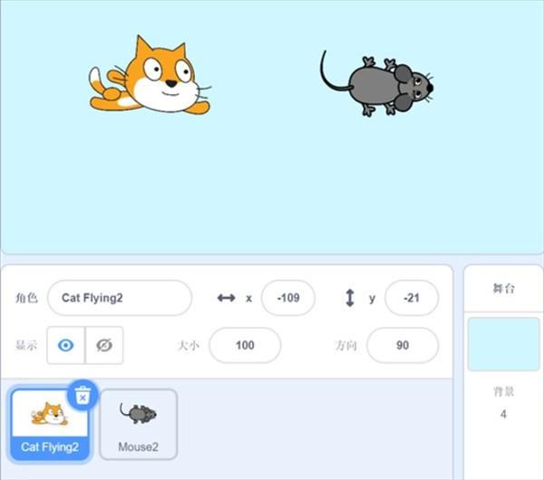 1、设置好小猫和老鼠角色,并设置好背景图。
